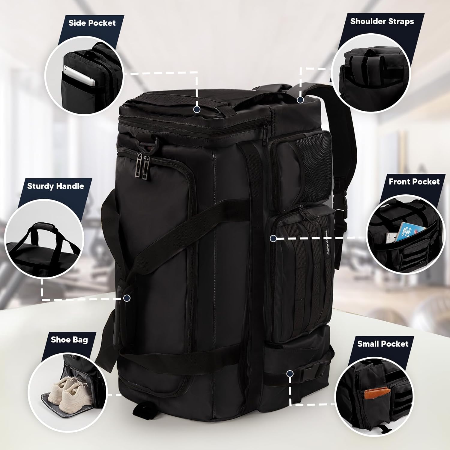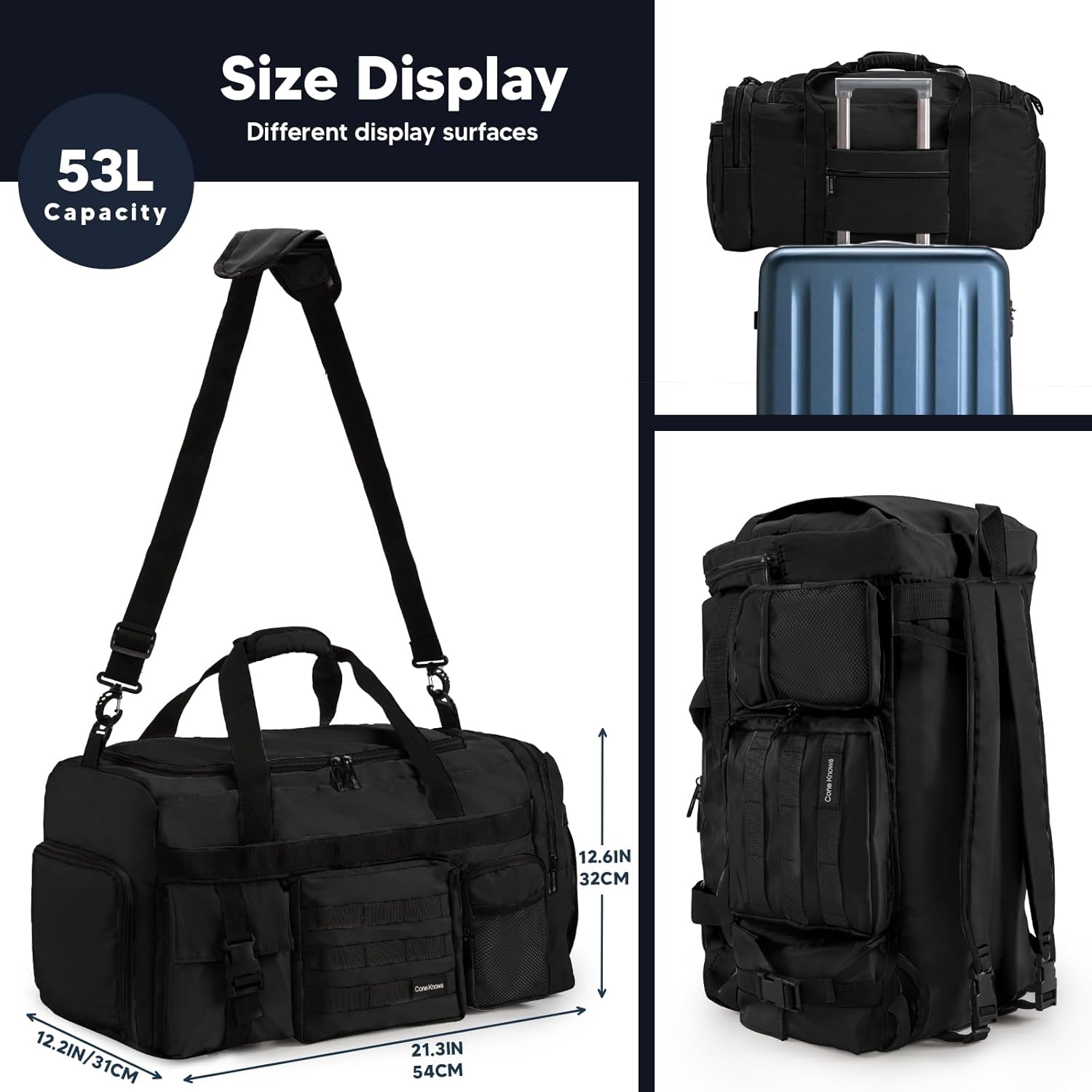 🎾 Grote Capaciteit: De fitnesstas heeft een capaciteit van ongeveer 53L en een afmeting van 54x31x32cm, heeft 1 hoofdvak en 9 aparte vakken, en het hoofdvak wordt ook geleverd met een waterdicht ritsvak voor het opbergen van natte spullen. Droge natte scheiding, ordelijke classificatie, en gemakkelijk te gebruiken.