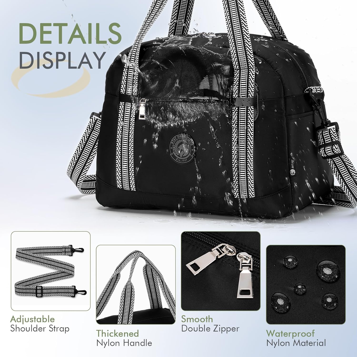 【Fuerte durabilidad】Tejido de nailon impermeable de alta calidad, suave y liso. Es ligero pero resistente al desgarro y fuerte gracias a las costuras mejoradas y reforzadas en ambos lados de las hebillas de los hombros. Este bolso de mano también cuenta con un asa superior con asa acolchada para una experiencia de transporte cómoda.