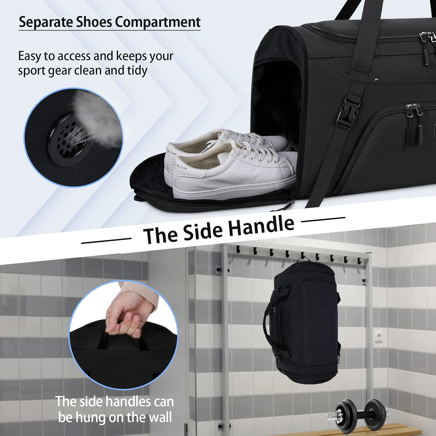 【Schoenzak en natte zak】: De reistas heeft twee ventilatieopeningen en externe ritsen, scheidt vuile schoenen van schone kleren en lost het geurprobleem op. De natzak is voorzien van een rits om natte kleding, handdoeken, paraplu’s, toiletartikelen of koude dranken in op te bergen, waardoor droog van nat wordt gescheiden en lekkage wordt voorkomen.