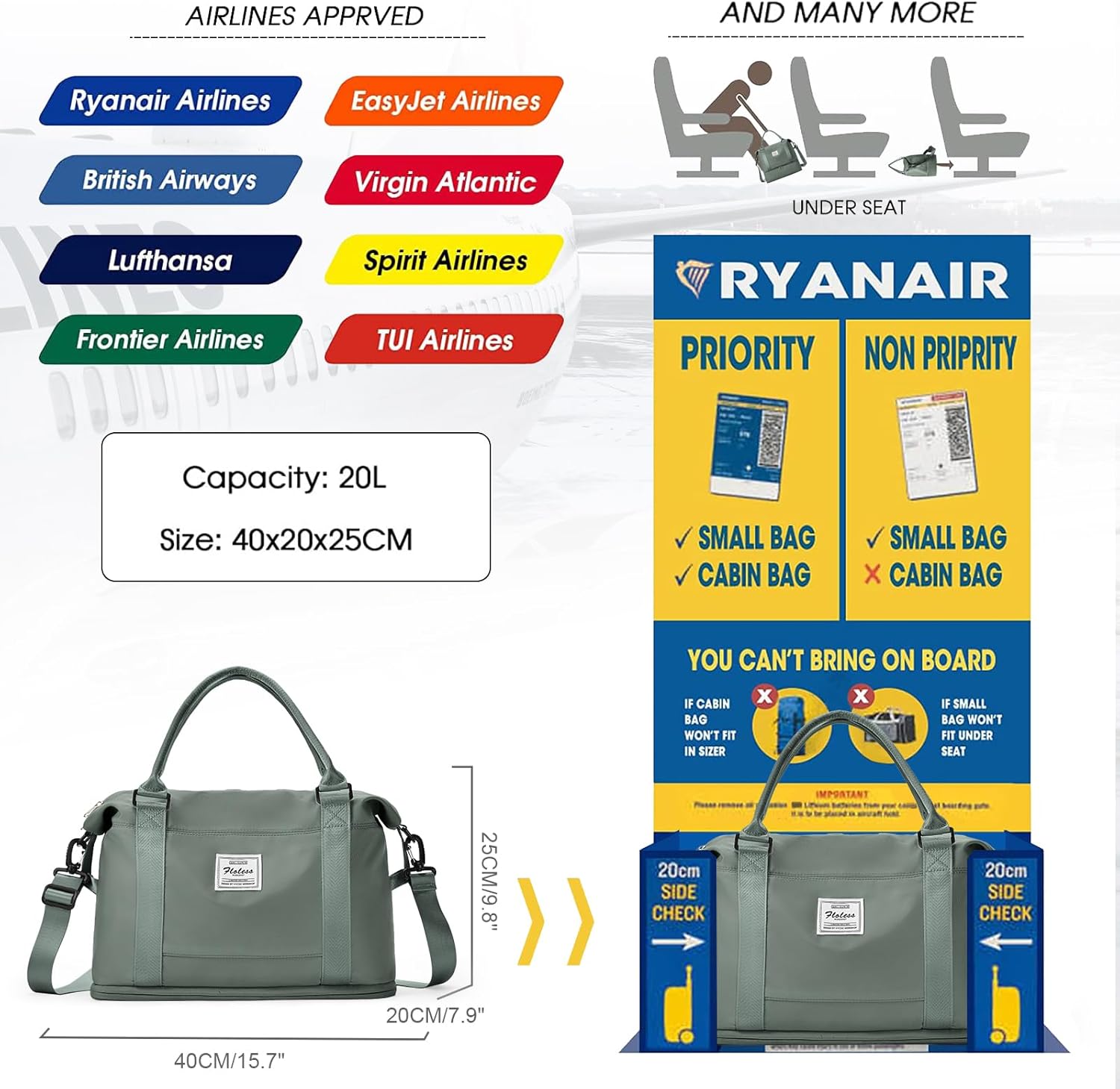 PERFECTE REISBAGAGETAS VOOR RYANAIR: De afmeting van deze reistas is 40 x 20 x 25 cm. Het komt overeen met het gratis handbagagebereik van Easyjet: 45 x 36 x 20 cm. U hoeft zich geen zorgen te maken over extra verzendkosten voor grote maten. Uw ideale weekendtas voor zakenreizen of vakanties en kan worden opgeborgen in het bagagevak en onder de stoel.