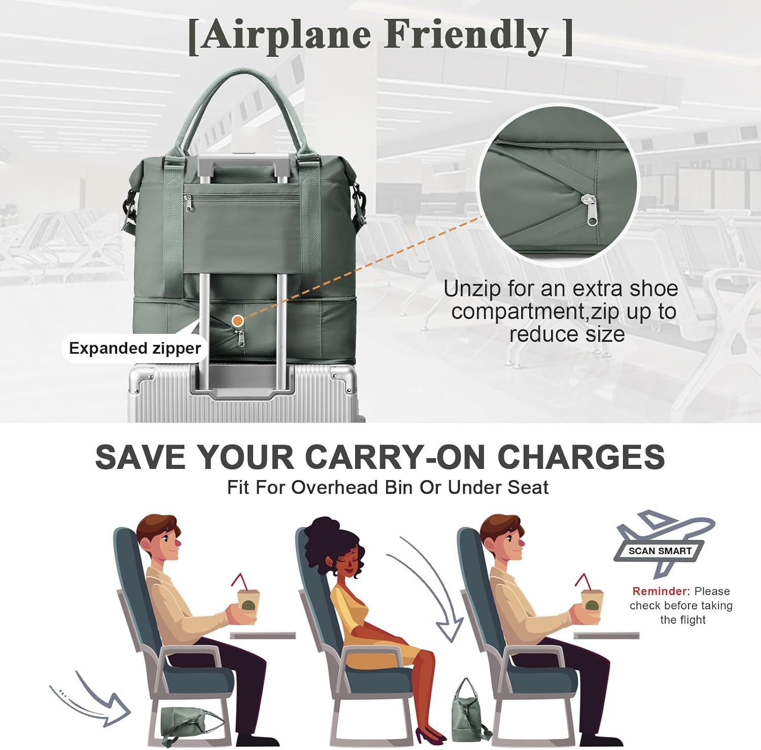 Damesreistas 40x20x25 Ryanair Handbagagetas Sporttas Weekendtas Zwemtas Waterdichte reistas Plunjezak Fitnesstas Trainingstas Ziekenhuistas met schoenenvak,K2-legergroen