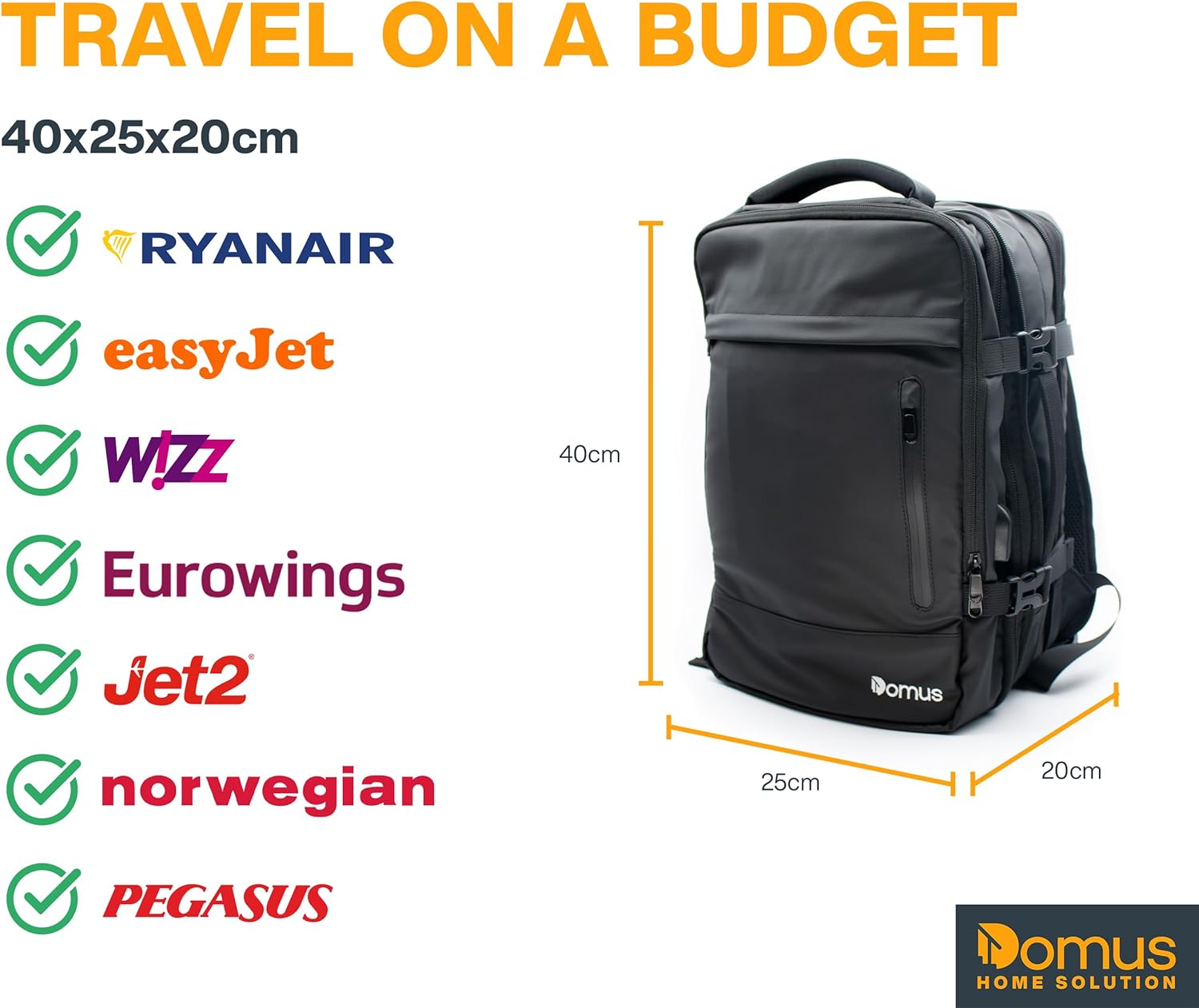 DOMUS Rugzak Reizen Ryanair 40x20x25 – Travel Backpack 20 L for Easyjet and European Low Cost Flights