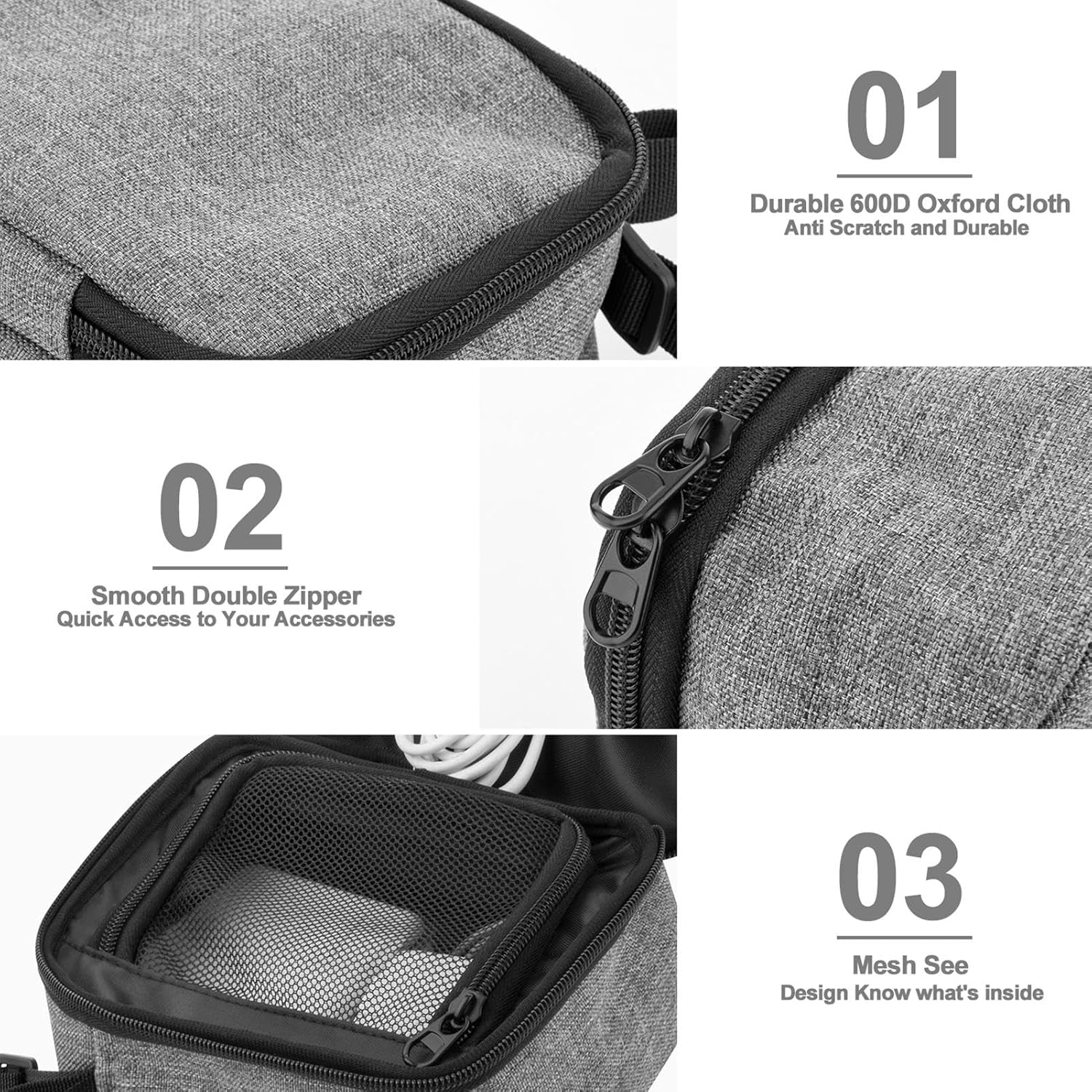 Gladde ritssluiting: Uitgerust met een gladde dubbele rits en een verstelbare schouderriem, maakt deze reiskabelorganizer het gemakkelijk om je accessoires te dragen, met een transparant gaasvak voor een duidelijk zicht en eenvoudige toegang tot accessoires.