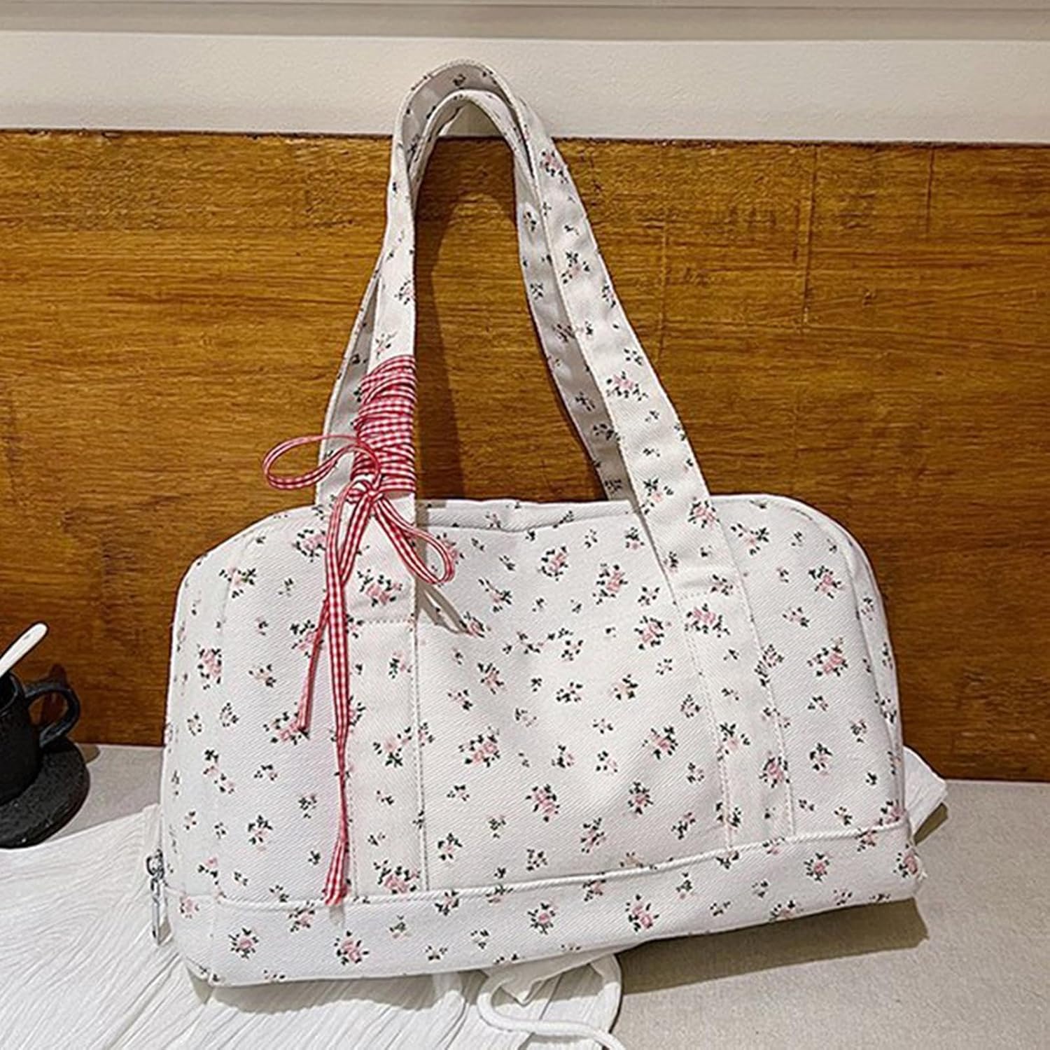 Stylish Floral Design: The Floral Duffle Bag boasts a vibrant and eye-catching floral print, adding a touch of charm and femininity to your travel gear. It’s perfect for weekend getaways, beach trips, or even yoga classes, making you stand out in style.