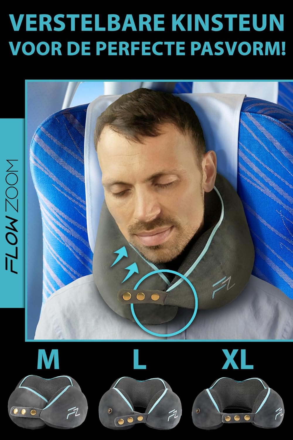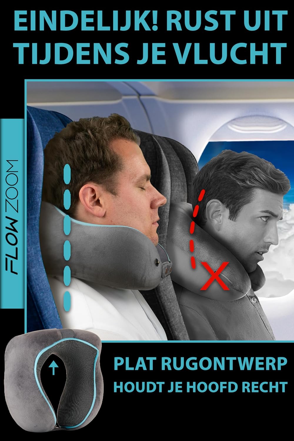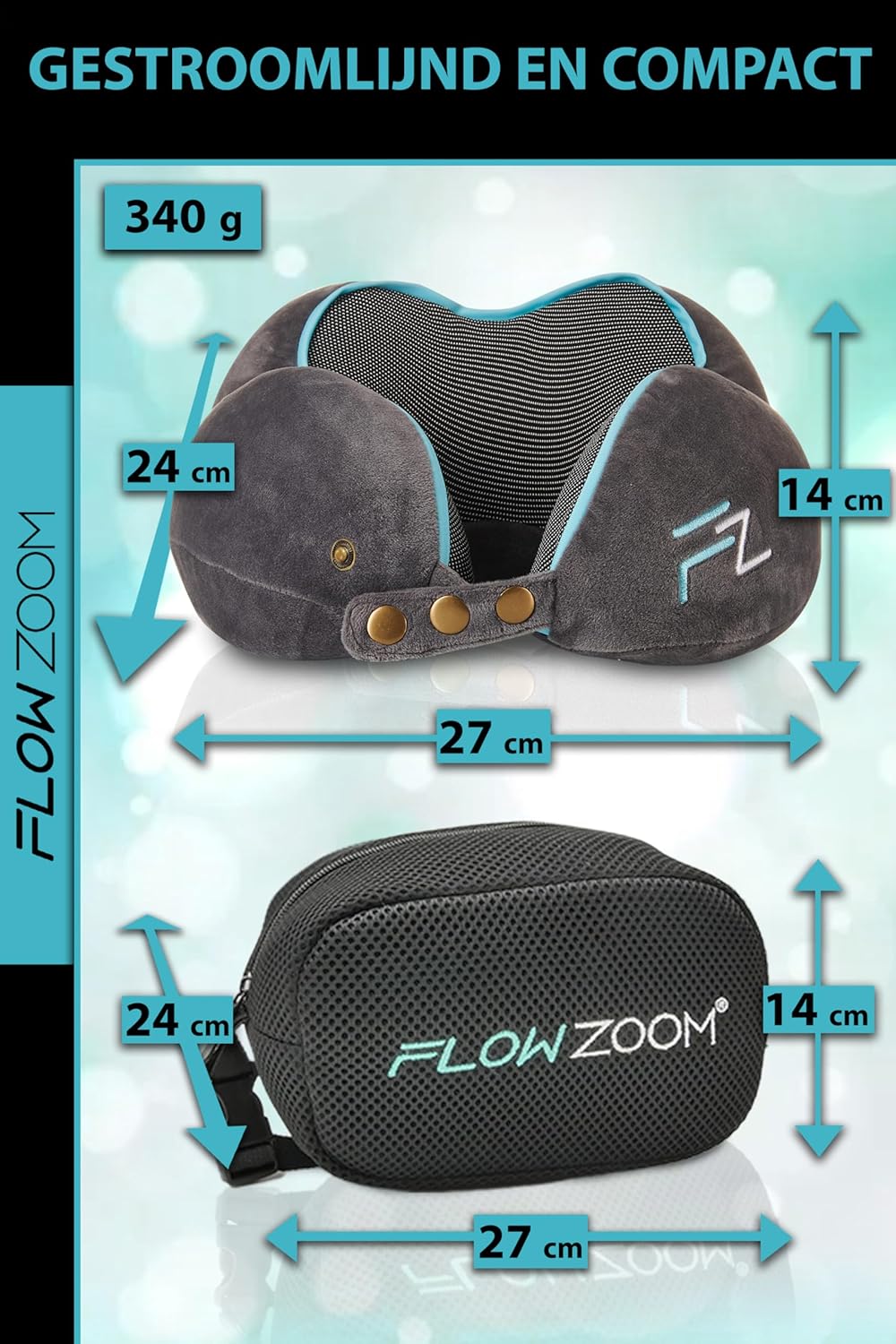 ?De zijkanten van het FLOWZOOM COMFY traagschuim reiskussen zijn groot genoeg om maximaal comfort te garanderen, maar het kan gemakkelijk worden opgeborgen in de reistas en past in elke handtas