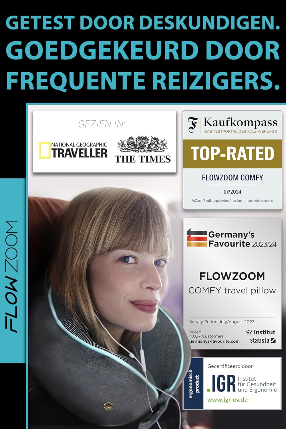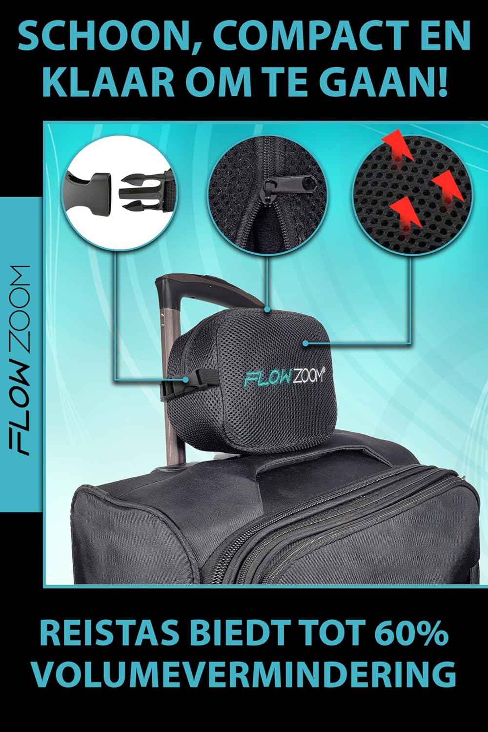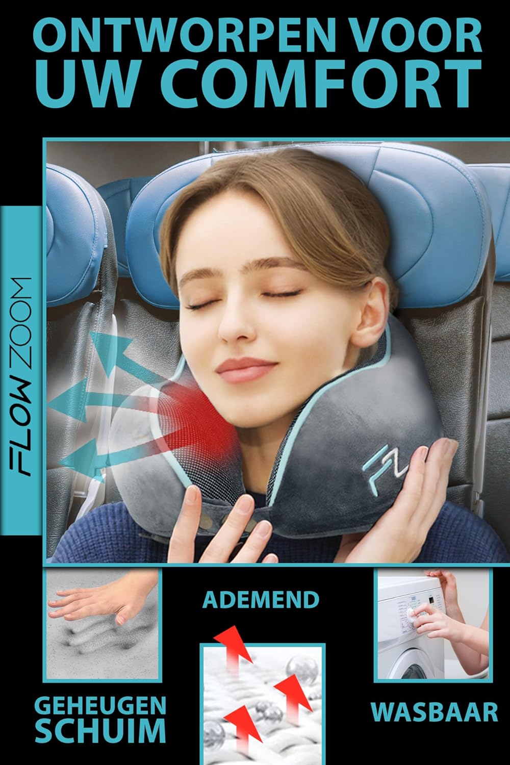 ?De zijkanten van het FLOWZOOM COMFY traagschuim reiskussen zijn groot genoeg om maximaal comfort te garanderen, maar het kan gemakkelijk worden opgeborgen in de reistas en past in elke handtas