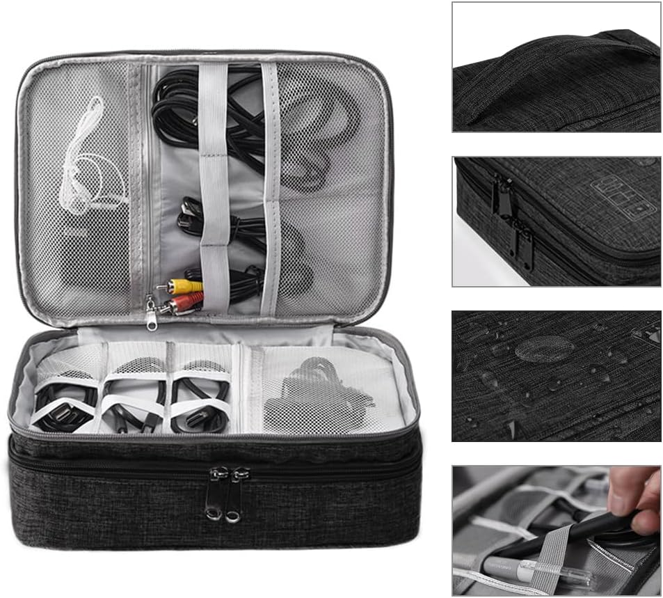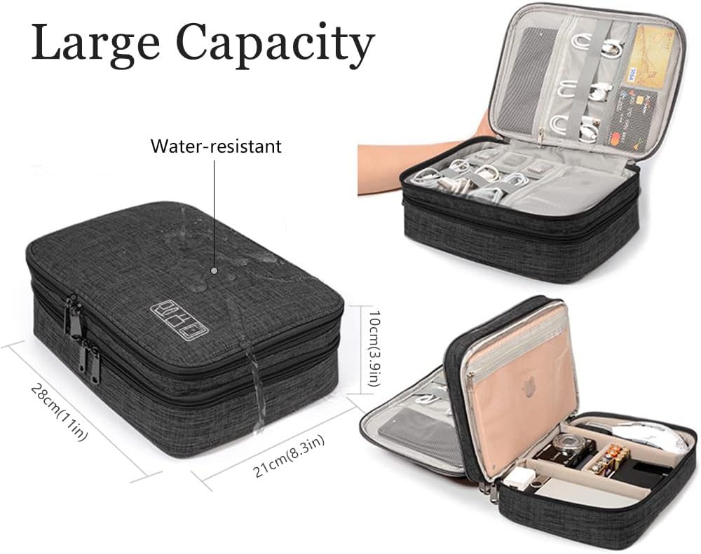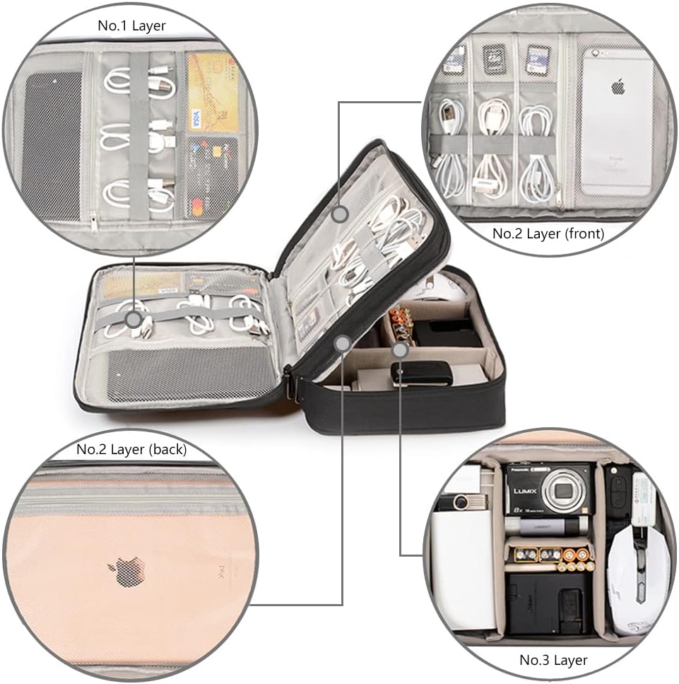 Grote capaciteit: het 3-laags ontwerp biedt meer opbergruimte voor deze elektronische reistas. Het past op je tabletcomputer, powerbank, mobiele telefoonlader, kabel, laptopadapter enz.