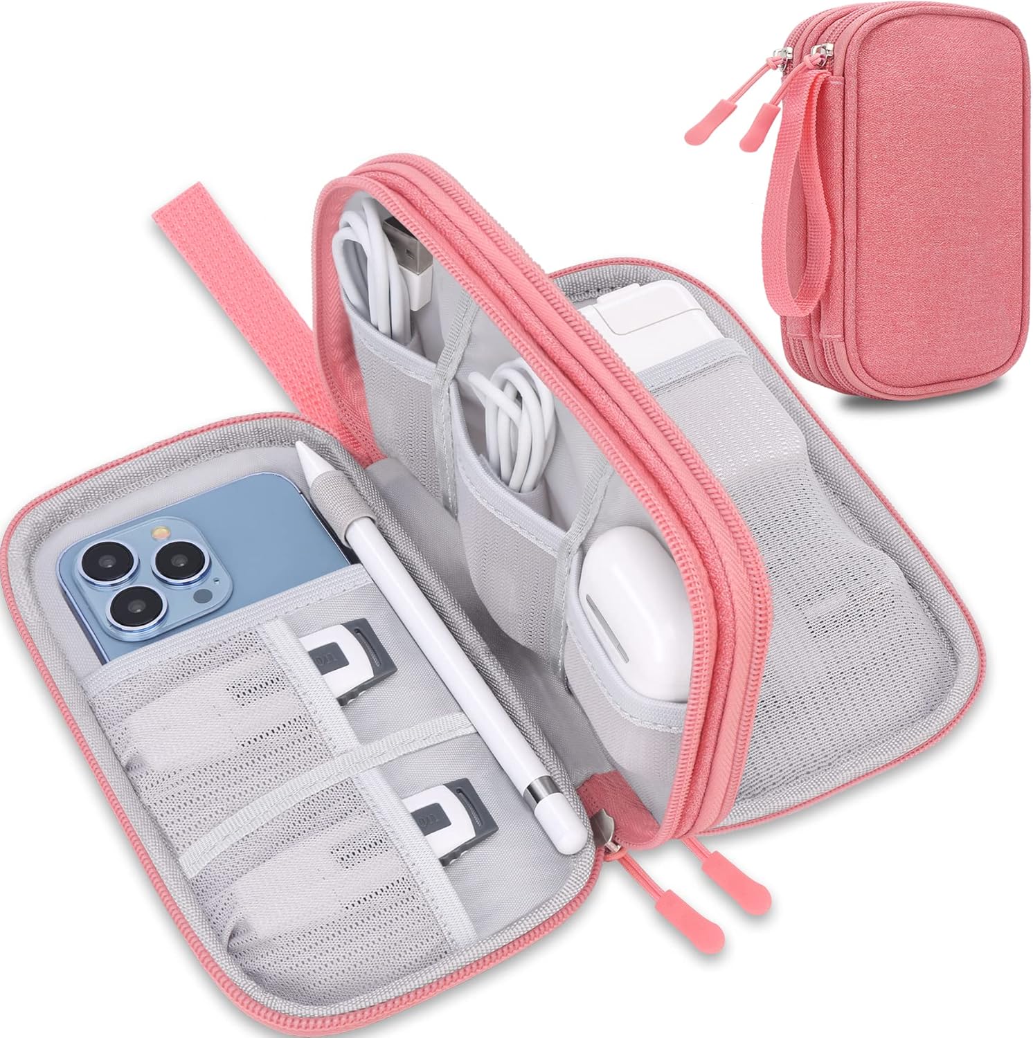 Lacdo Elektronische organisator Reiskabeltas Zakje Tech Elektronische accessoires Draagtas Draagbare dubbellaagse opladerkoffer voor kabel, snoeren, oplader, telefoon, oortelefoon, powerbank, Roze
