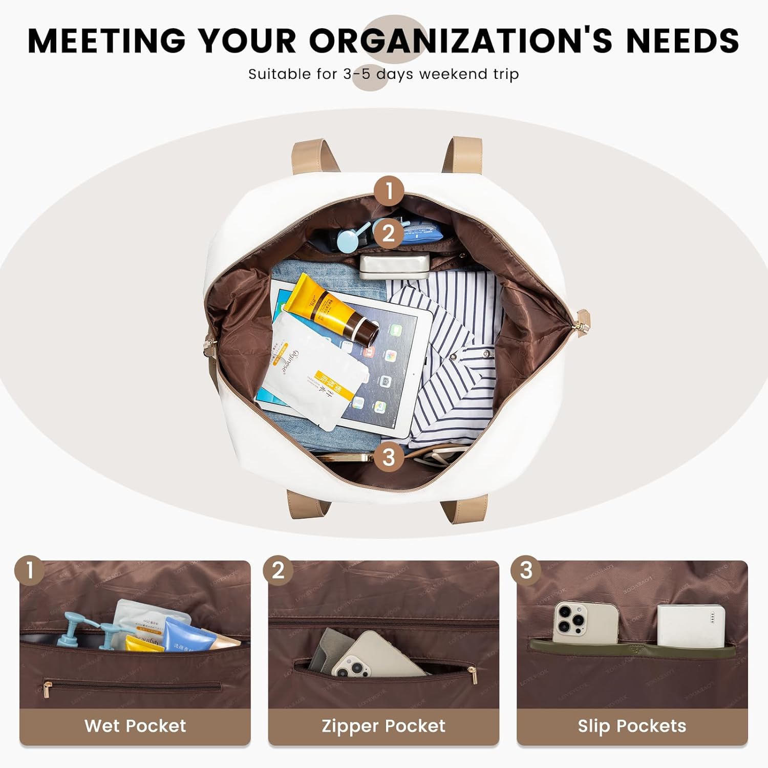 Reisbenodigdheden duffeltas: 1 reistas met grote capaciteit + 1 toilettas + 1 kledingtas. Biedt 2 comfortabele handgrepen en gevoerde, afneembare schouderriem. Perfect voor vakantie, korte trips, weekendtrips, camping, strand, ziekenhuis, fitness of business.