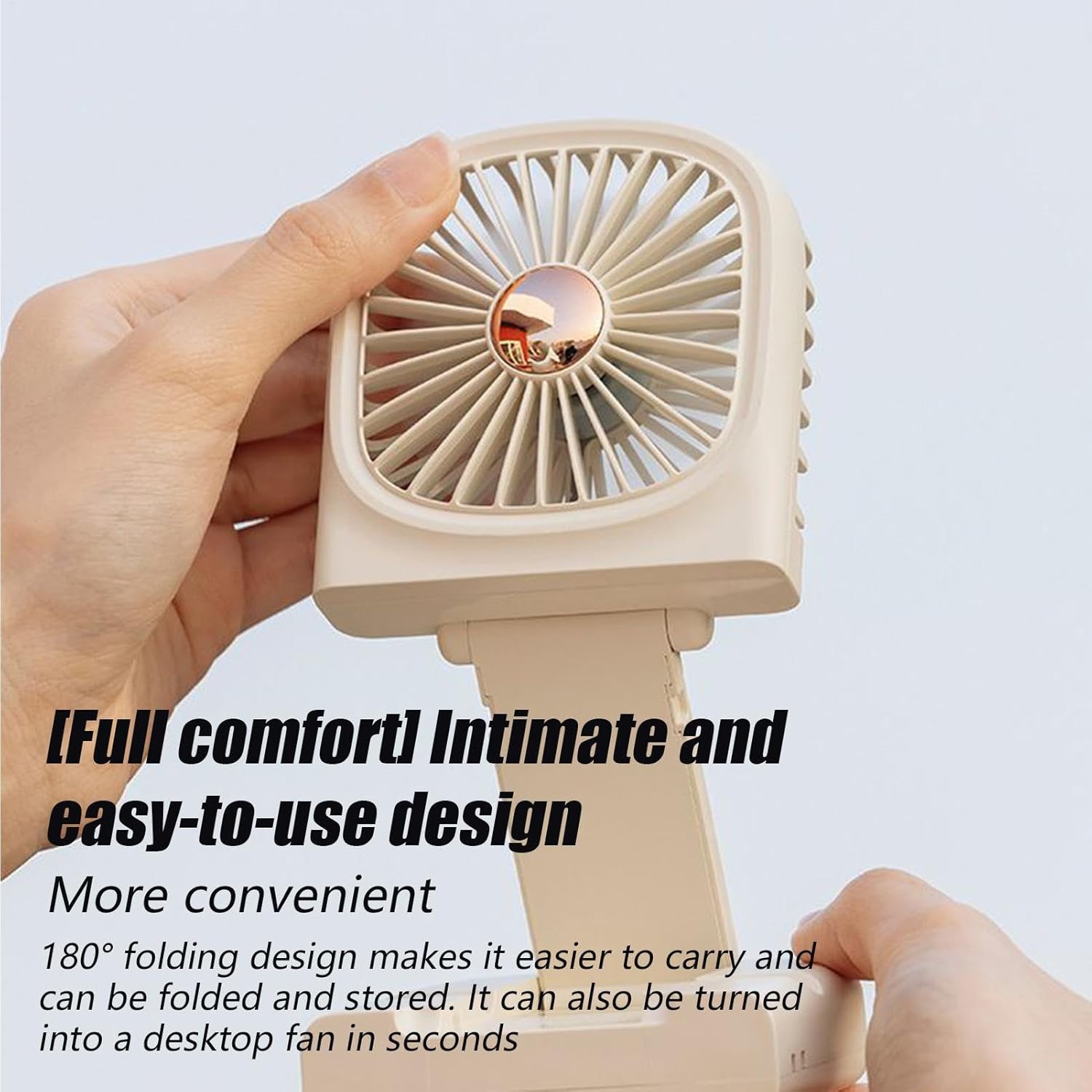 Foldable & Multi-Use Functionality: The 180-degree foldable handle lets you adjust the fan as a handheld device or a desk fan ensuring versatility for various cooling needs Whether you’re working at your desk or walking outdoors this fan adapts to your situation