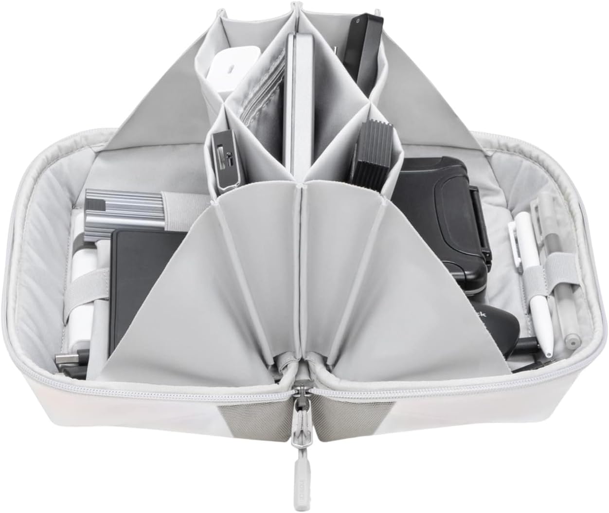 Organiseer uw reistechnologie noodzakelijk met gemak in onze compacte technische organisator! Het spatbestendige materiaal voorkomt schade aan uw muizen, koptelefoons en andere gadgets. Houd al uw items op hun plaats met meerdere elastische riemen.