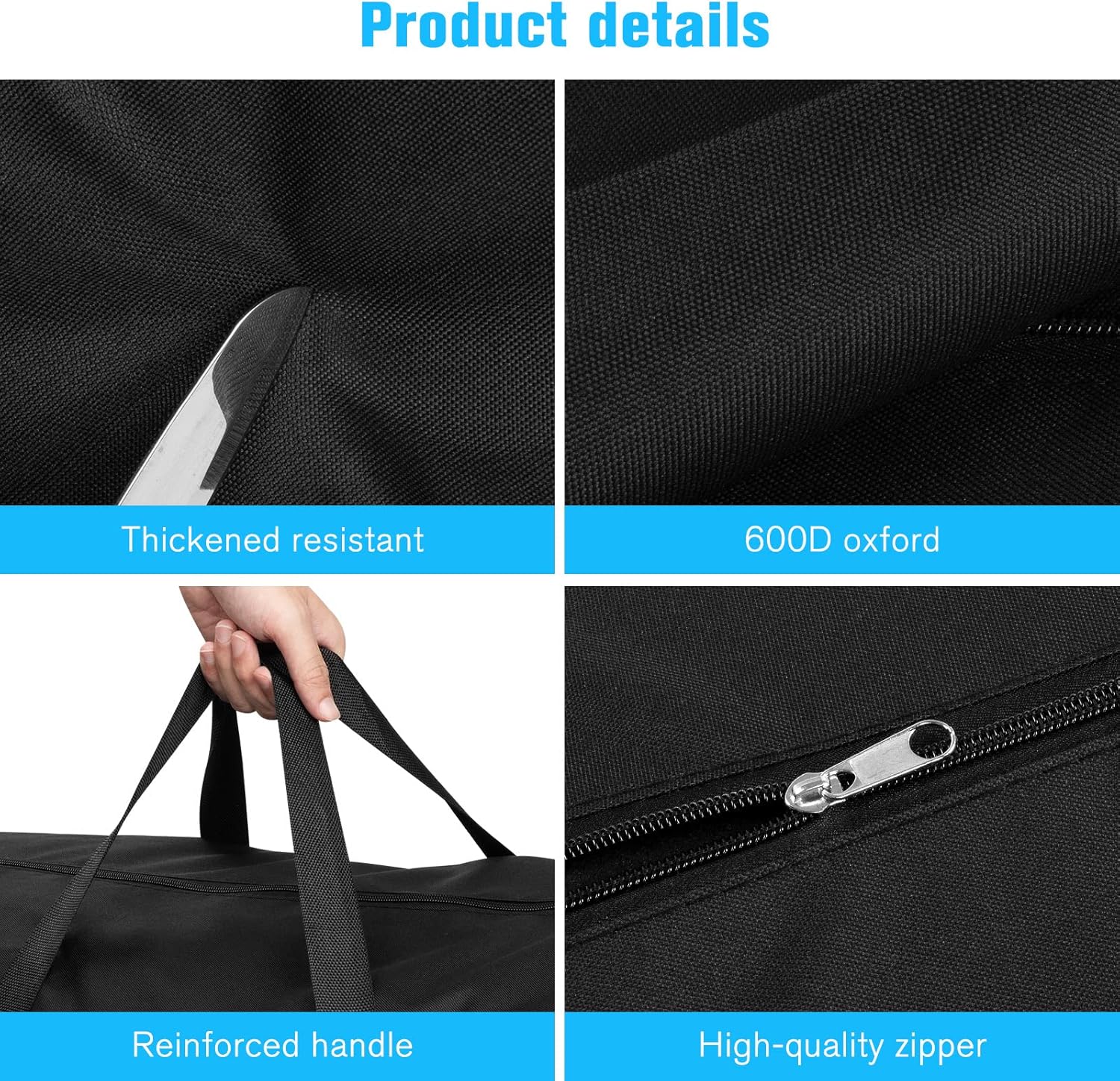 Deze grote opbergtas is gemaakt van high-density 600D Oxford doek. Sterke taaiheid, stevigheid en betrouwbaarheid.