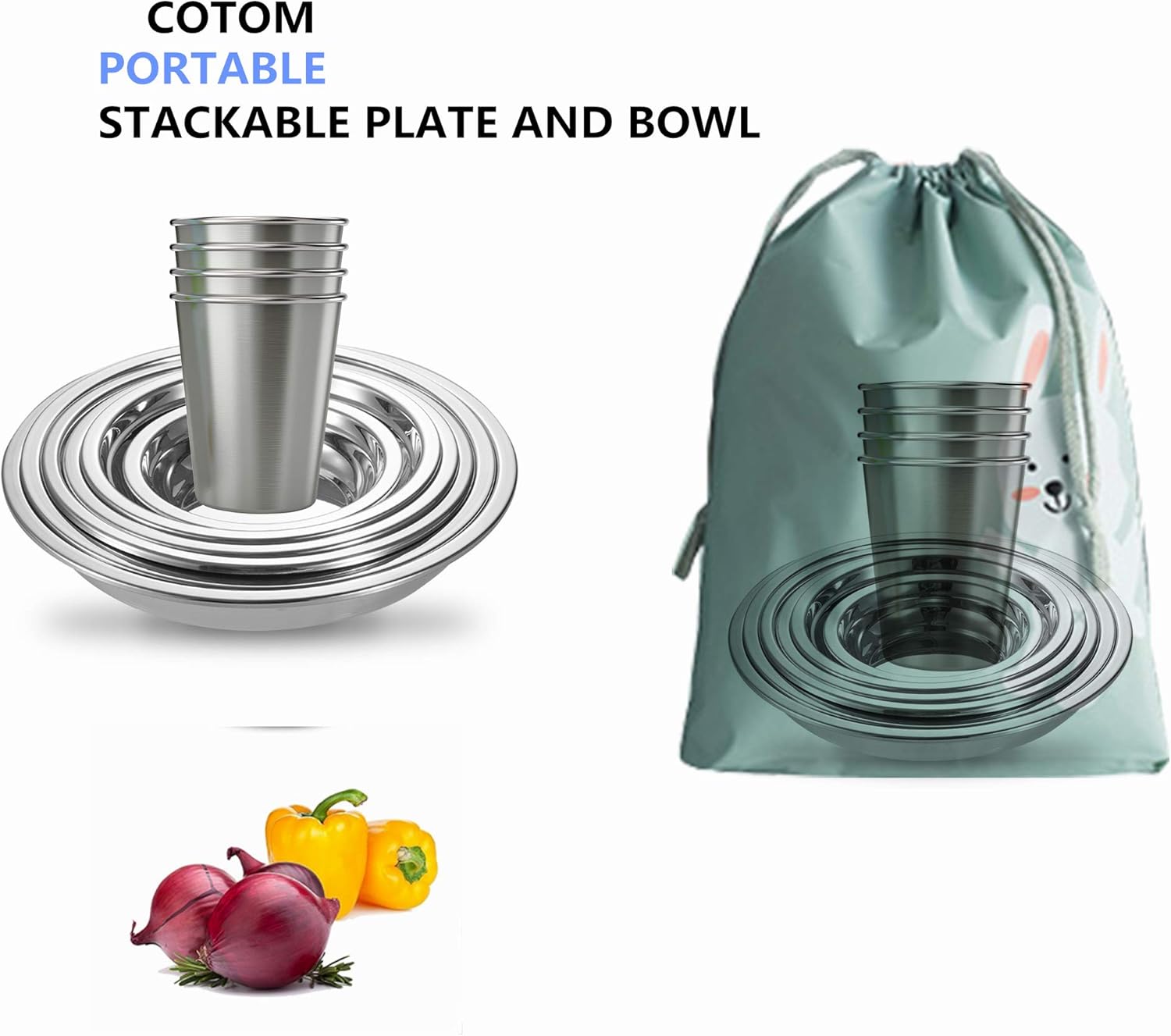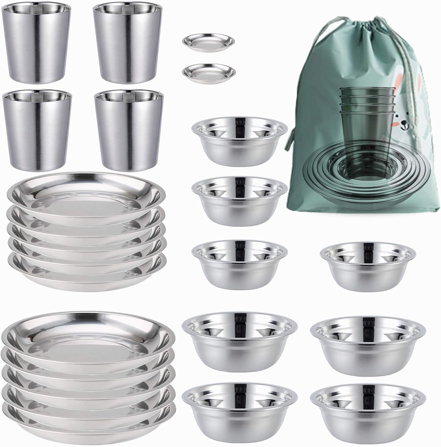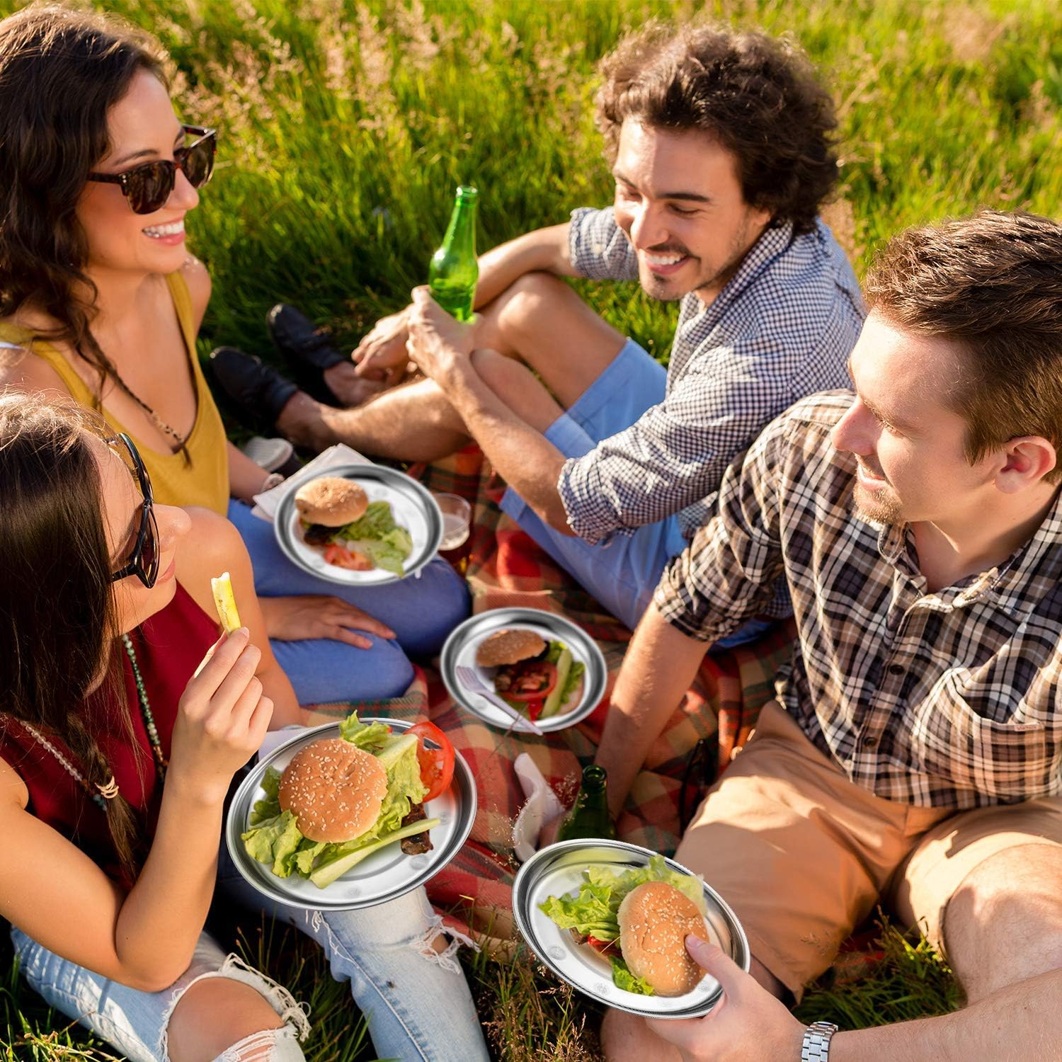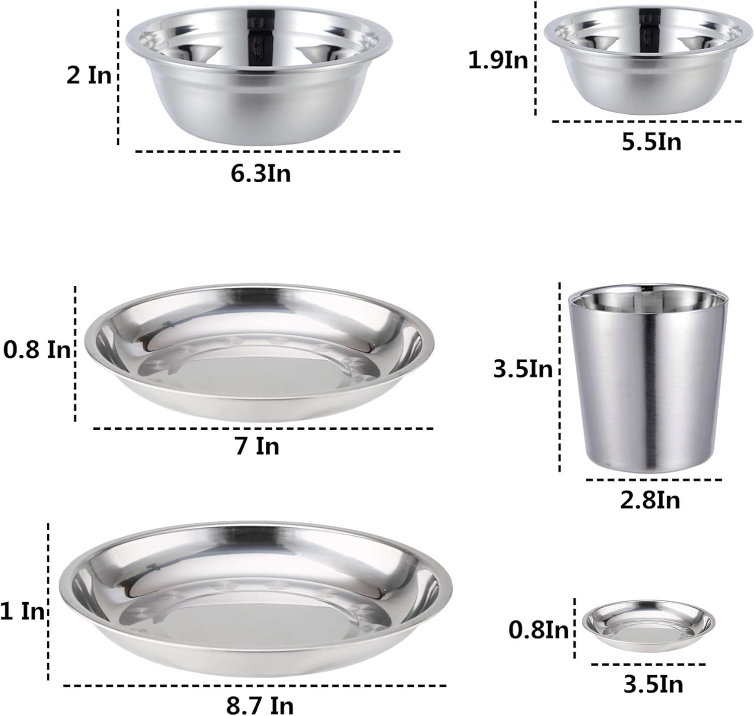 Ultieme outdoor board en kom set – geschikt voor kamperen, wandelen, stranduitstapjes, BBQ, zomer aan het meer, deze hoogwaardige roestvrijstalen kommen, borden en bekers maken het gemakkelijker om van heerlijk eten te genieten en de stemming vrij te geven.