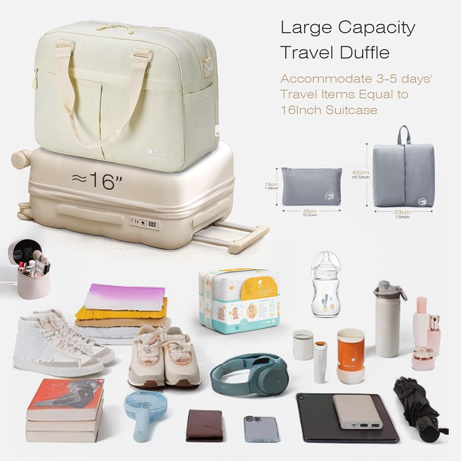 Multi -Functionele Reistas: deze waterdichte waterdichte Reista kan voor verschillende gelegenheden worden gebruikt, met een stijlvol ontwerp en gemakkelijk dragen. Het is een uitstekende keuze voor damesweekendzakken, fitnesszakken, sporttassen, zwembakken, handbagagetassen, ziekenhuiszakken, vliegzak en zwangerschapstassen.