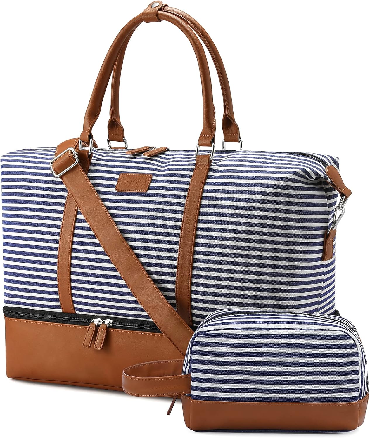 Stijlvol en duurzaam: deze reistas set van hoogwaardig canvas en zacht bruin kunstleer is licht en duurzaam, heeft een minimalistische en stijlvolle look, maakt je mooi voor je reis!