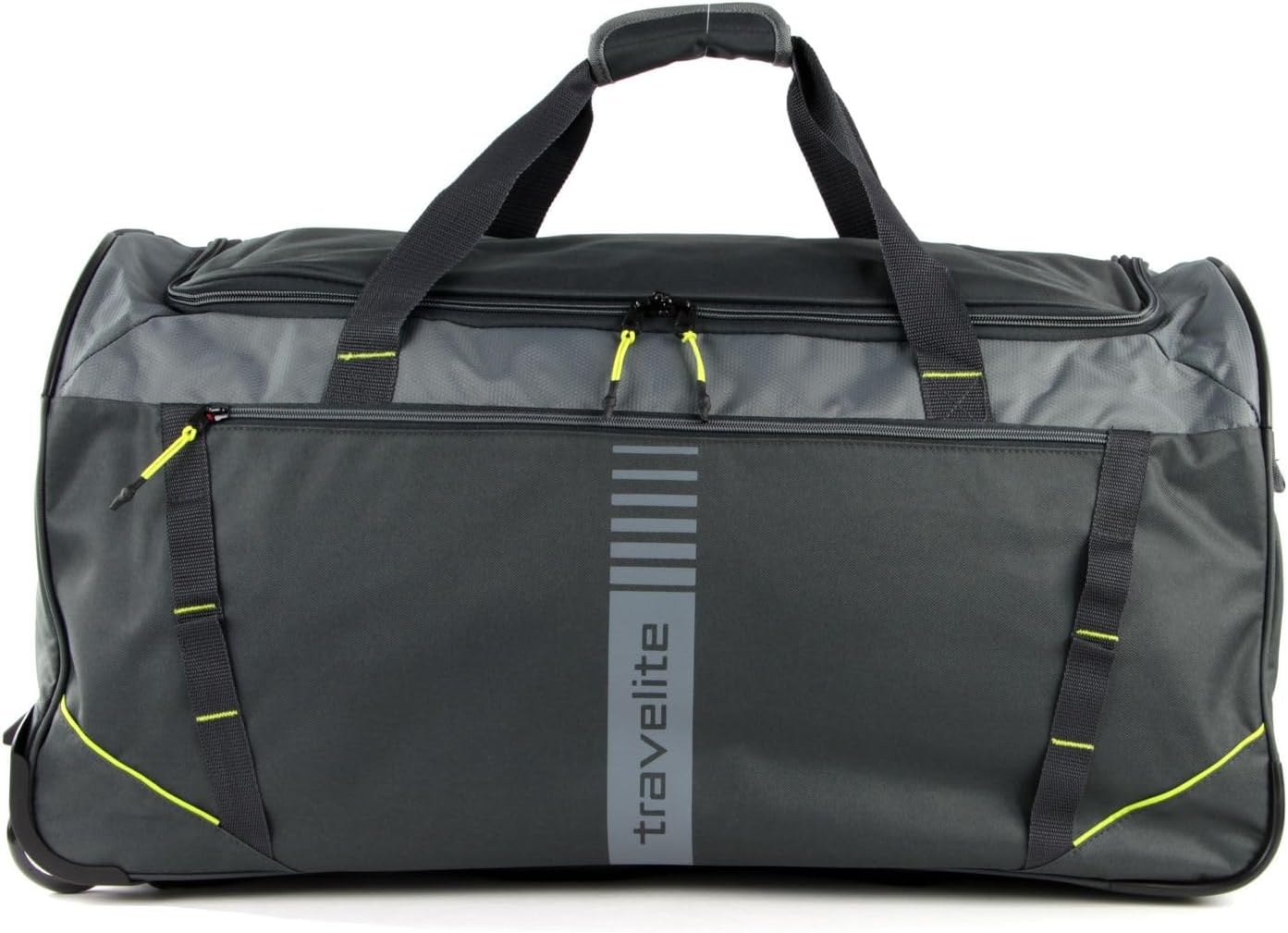 De reistas is verkrijgbaar in de kleuren antraciet/citroen, marine/rood en petrol/oranje.