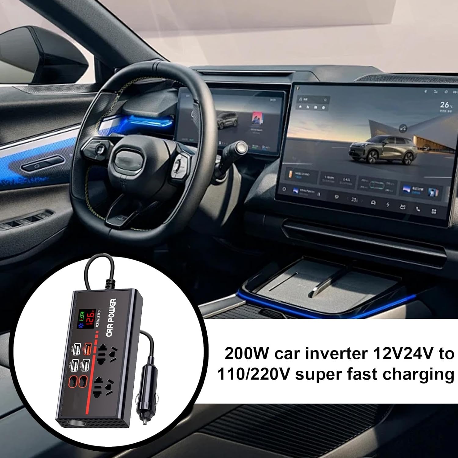 High Efficiency Power Conversion: Converts 12V or 24V DC to 110V or 220V AC with 200W output for fast and stable charging; perfect for powering laptops, phones, tablets, and small appliances during road trips, camping, or emergencies