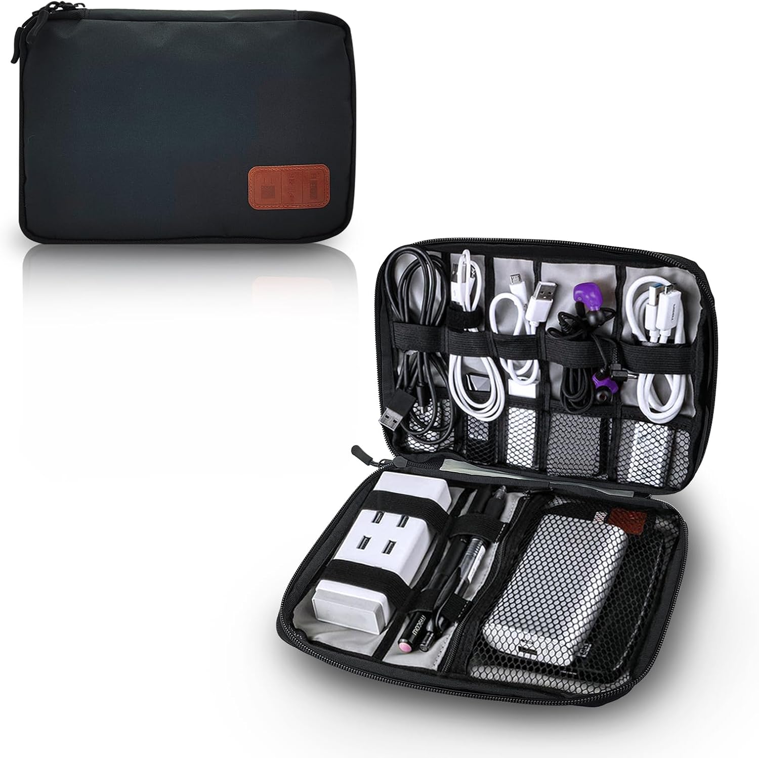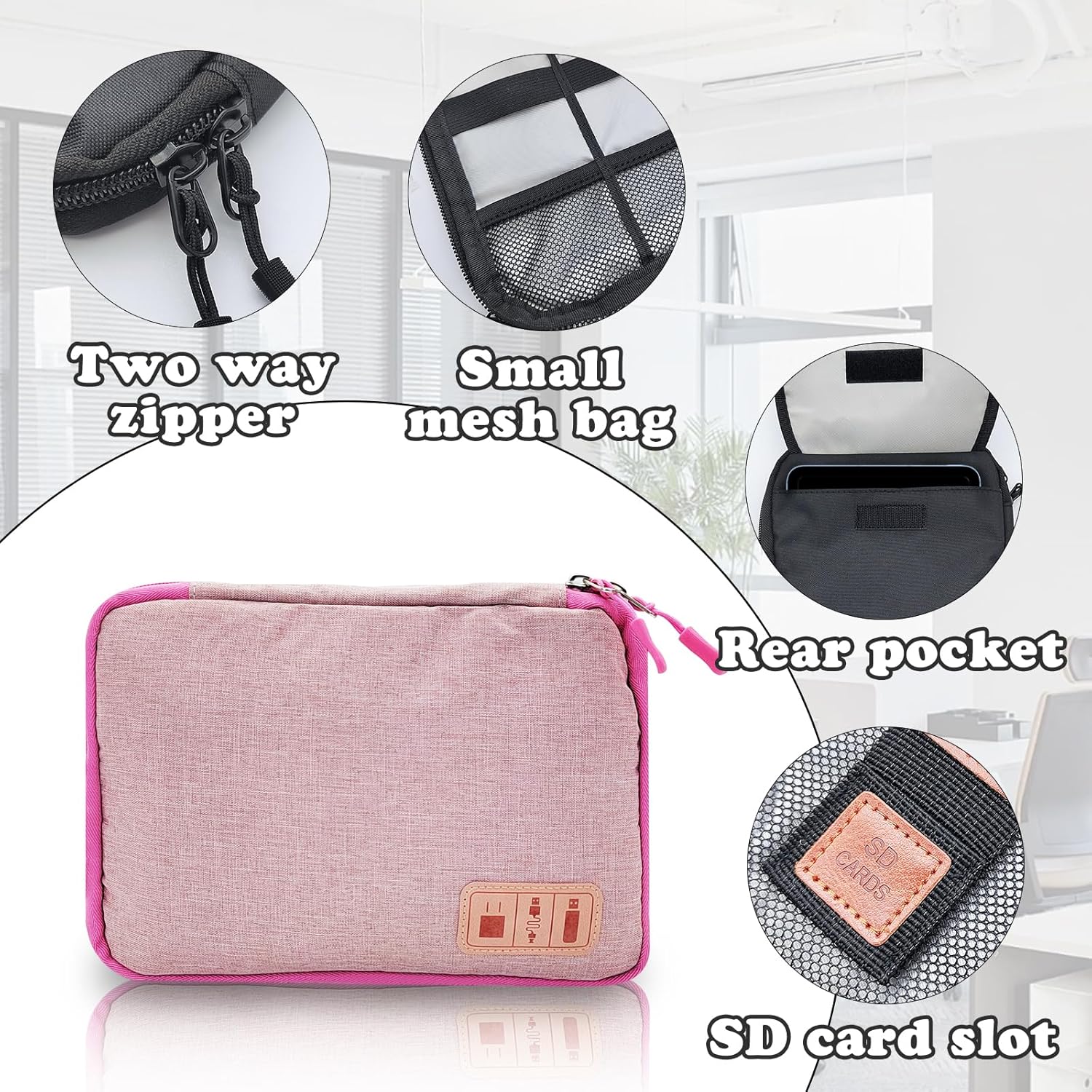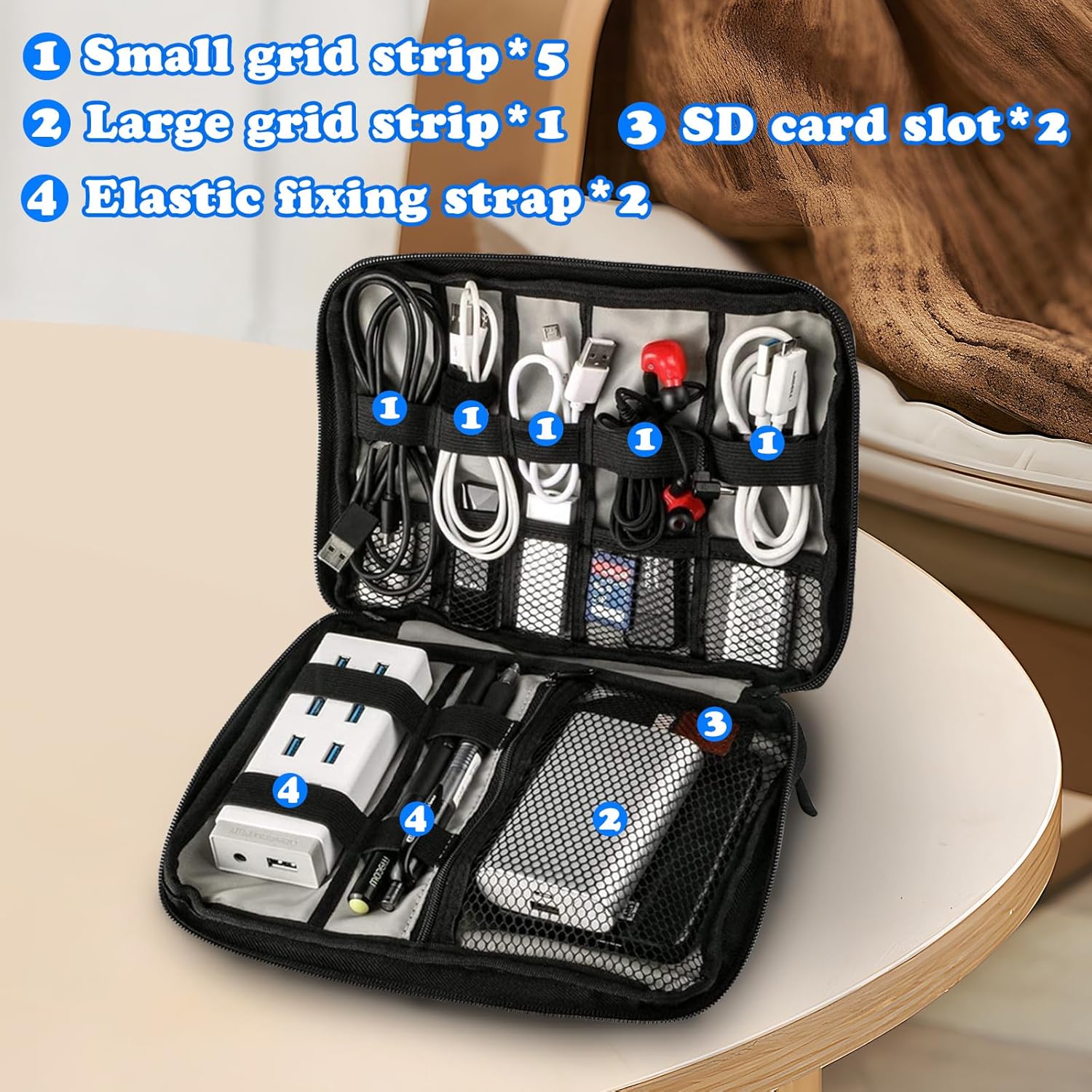 【Voldoende capaciteit】: er zijn vijf verschillende maten opslagvakken voor datakabels, twee sleuven voor telefoonkaarten, twee elastische vakken, een beschermingsnet met ritssluiting en een vak met klittenbandsluiting. De kabeltas is uitgerust met een beschermingsnet en elastieken. Het veiligheidsnet met ritssluiting kan kleine voorwerpen opbergen die gemakkelijk verloren gaan. Elastische banden kunnen je spullen vastzetten, zodat voorwerpen netjes kunnen worden geplaatst.
