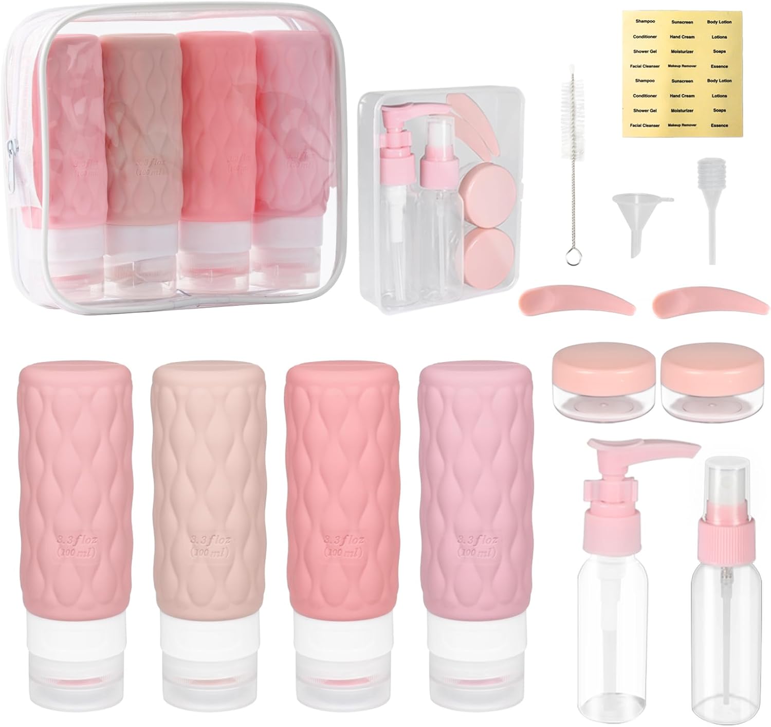 ● Onze siliconen reisflesjes voor toiletartikelen hebben een draagbaar ontwerp, vergezeld van een doorzichtige toilettas met rits en een doorzichtige opbergdoos, waardoor je reisflesjes, spuitflesjes, pompflessen en meer gemakkelijk kunt organiseren. Dit maakt het eenvoudig om je voor te bereiden op lange reizen.